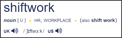 [1] Oxford Languages definition from Google search "definition of shiftwork" and "definition of shift work"
